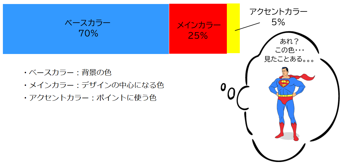 またひとつのデザインの中に 70:25:5 の法則を取り込むのがバランスがよく美しい配色比準とされています。